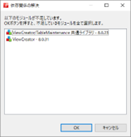 ① 依存関係モジュールが不足している場合、以下の通りメッセージが表示されます。