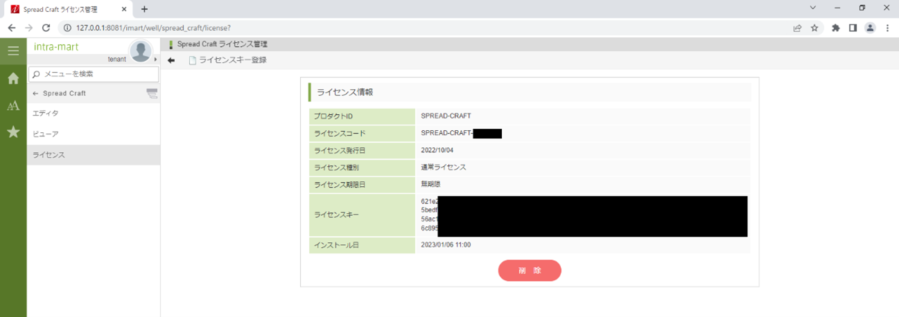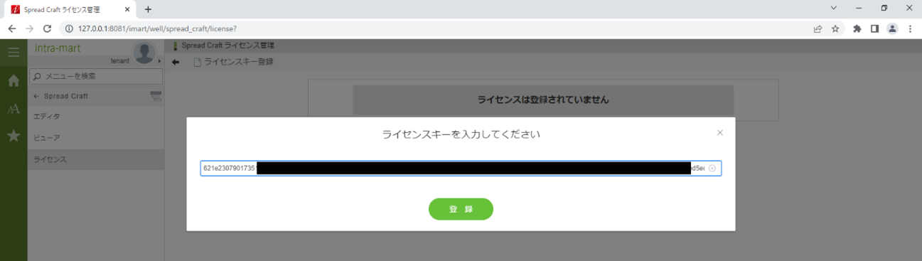 SpreadCraftを利用する為にはライセンスキーを登録する必要があります。