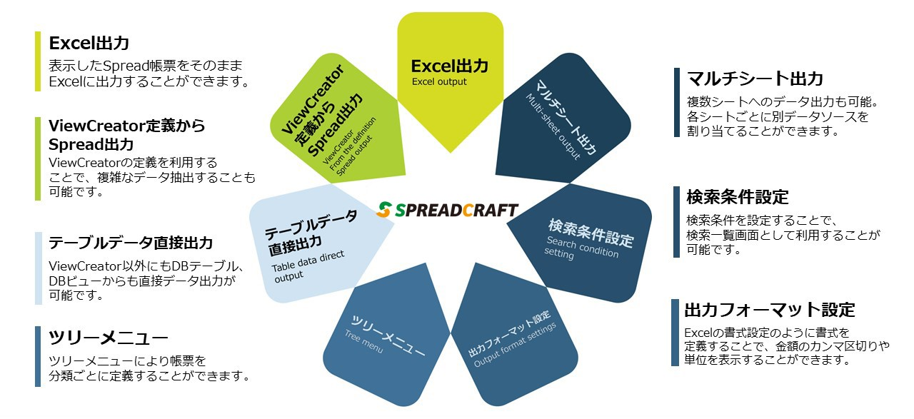 SpreadCraftは速く簡単にSpreadSheetを出力する為のデータ活用ツールです。