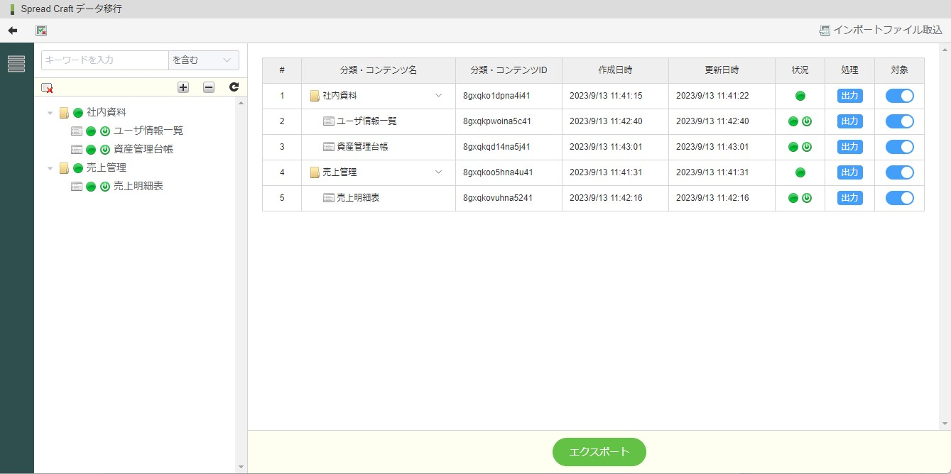 スプレッドクラフトで作成したコンテンツを別サーバへ移行する為の機能です。
