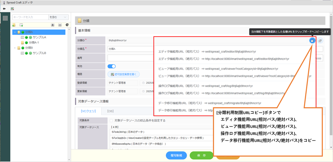 データ移行機能用URL(相対パス/絶対パス)をクリップボードへコピー