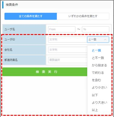 検索条件の条件型が「文字」および「数値」の場合に選択可能