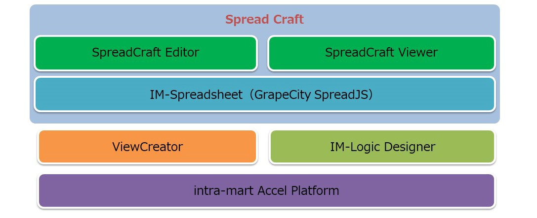 SpreadCraftは「intra-mart」機能を活用し、複雑なデータアクセスが必要なSpread帳票をビジュアル的な操作かつ短期間で作成することが可能です。