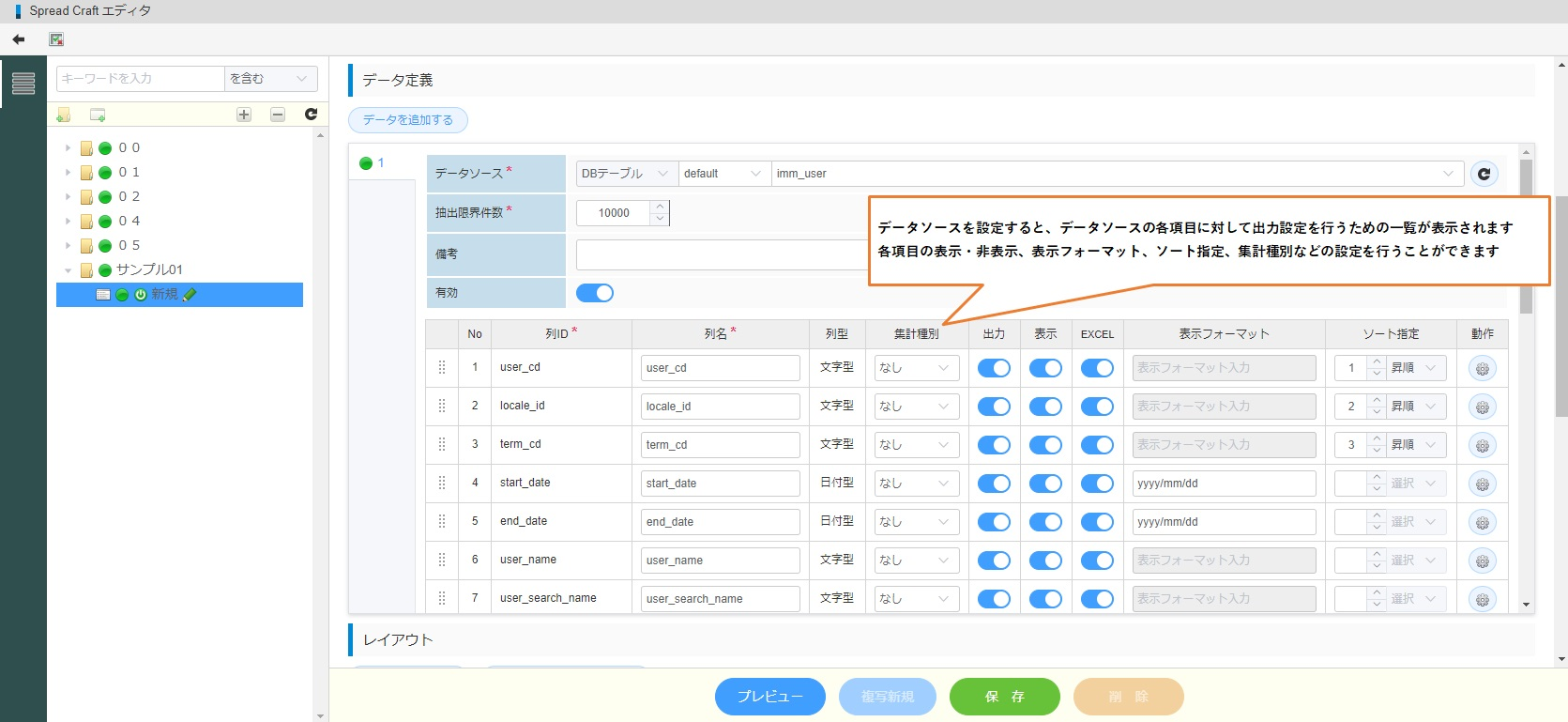 ViewCreatorの出力項目がデータソースの項目設定に反映されます。