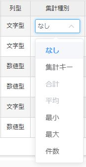 - 条件型が「文字」の場合数値型、日付型のデータ項目は選択できない