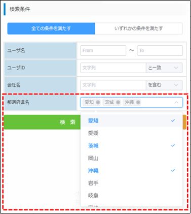 「いずれかの条件」もしくは「全ての条件を満たす」を切り替えて条件設定します。