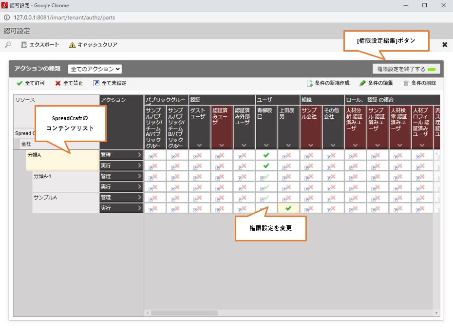 スプレッド表示内容のCSV形式でのエクスポート可否設定