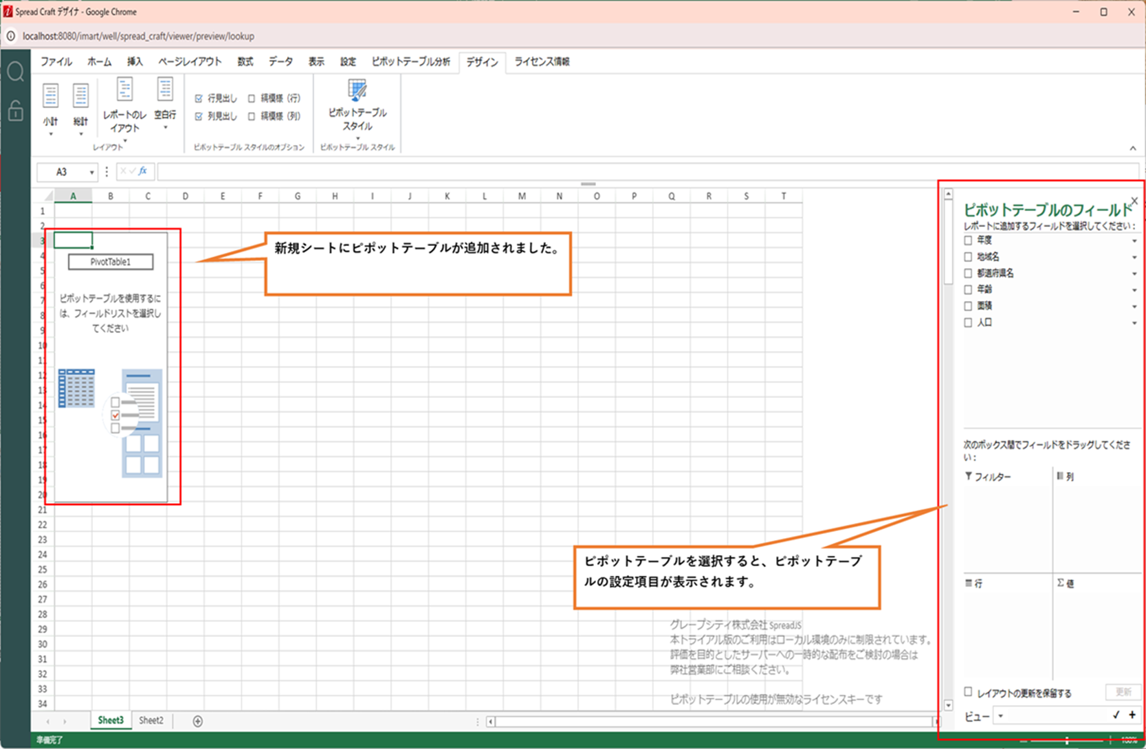 新規シートにピボットテーブルが追加されたことを確認しました。