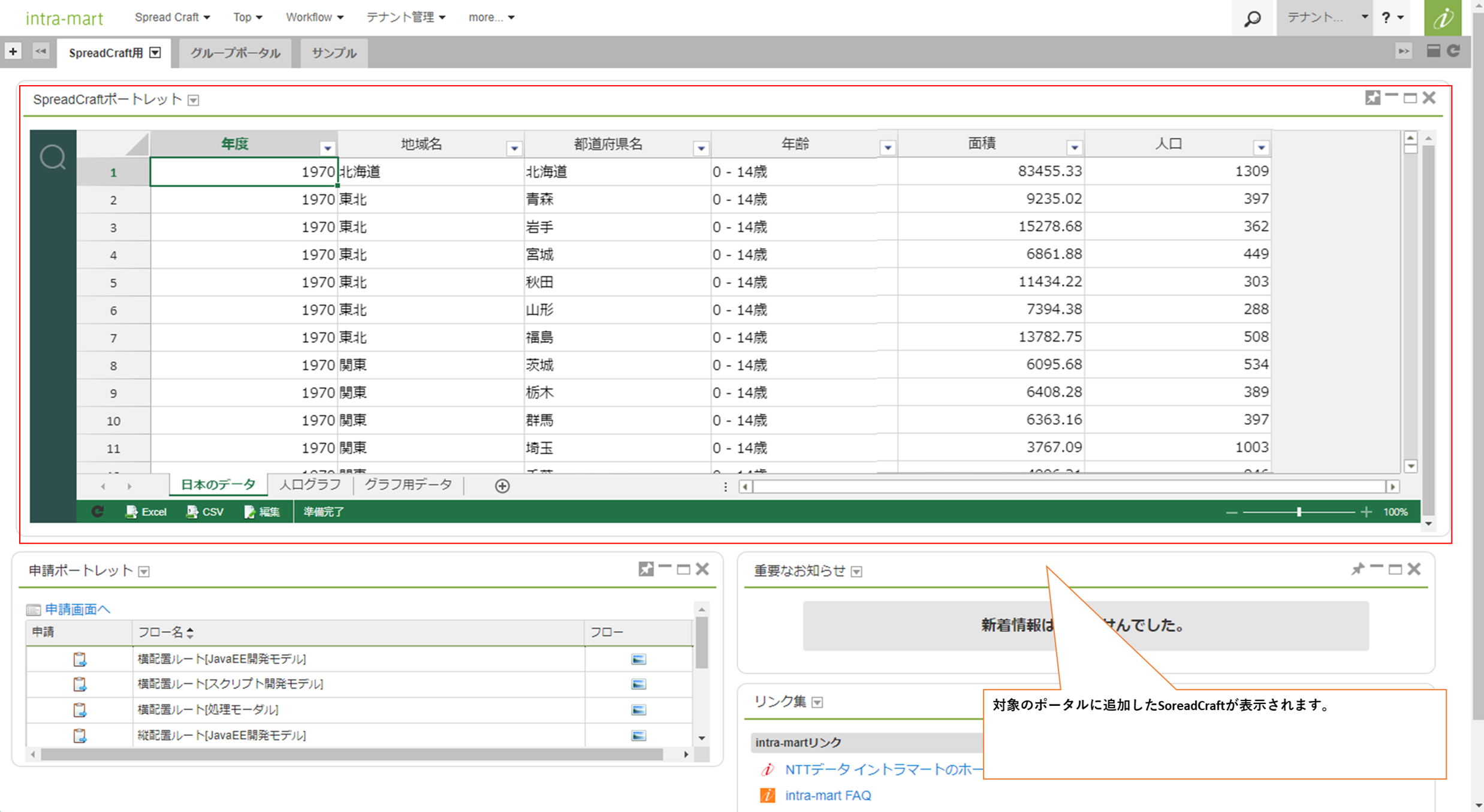 SpreadCraftViewerをポートレットとして定義することでポータルに直接表示させることができます。