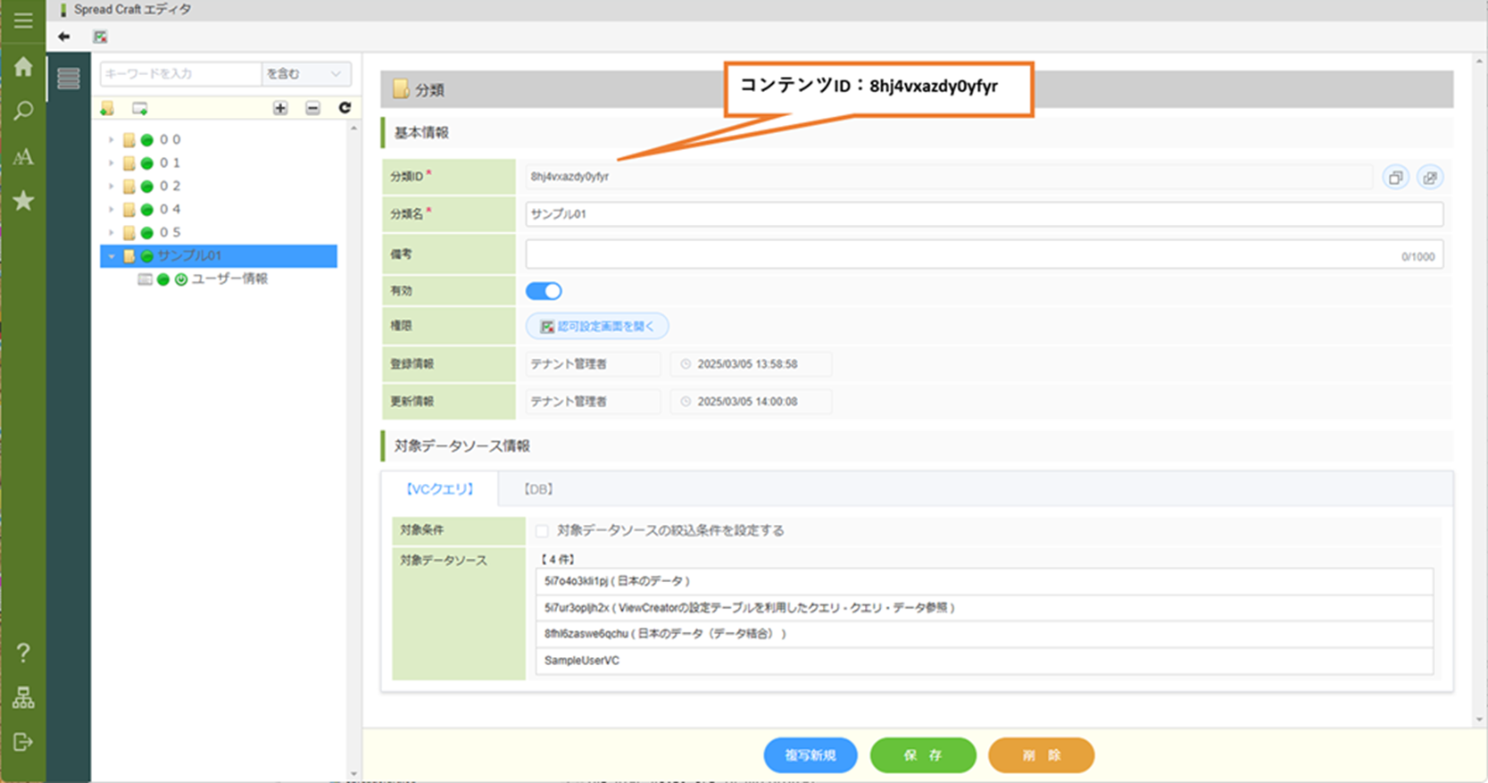 ② ViewCreatorをデータソースとして設定しコンテンツを作成
