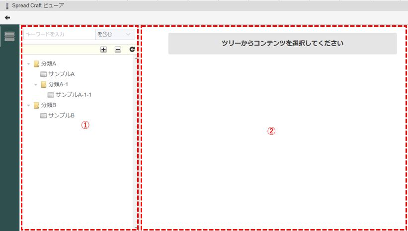 ツリーメニューのリストコンテンツを選択すると、対象コンテンツの実行画面をコンテンツ詳細表示領域に表示します。